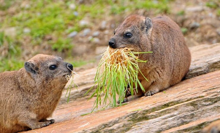 Hyraxes are omnivores, so they feed on fruits, grasses, plants, as well as small critters like birds or lizards. One of their favorite meals is bird’s eggs, so they raid bird nests to find precious food sometimes. A rock hyrax is very cautious when it eats because the predators could be from anywhere. It would eat a mouthful, then stop to quickly survey its surroundings before going back to eating again. Thanks to their wide mouth and sharp teeth, taking quick large bites is not a problem for them. Rock hyraxes often start foraging in the afternoon on sunny days when food is abundant and fresh. They prefer to stay in when the weather is cold or it is a rainy day.