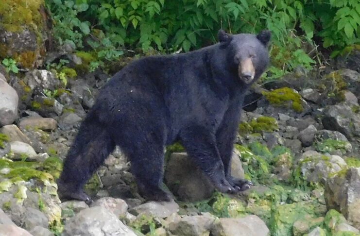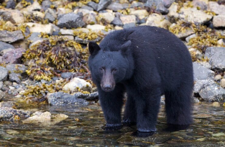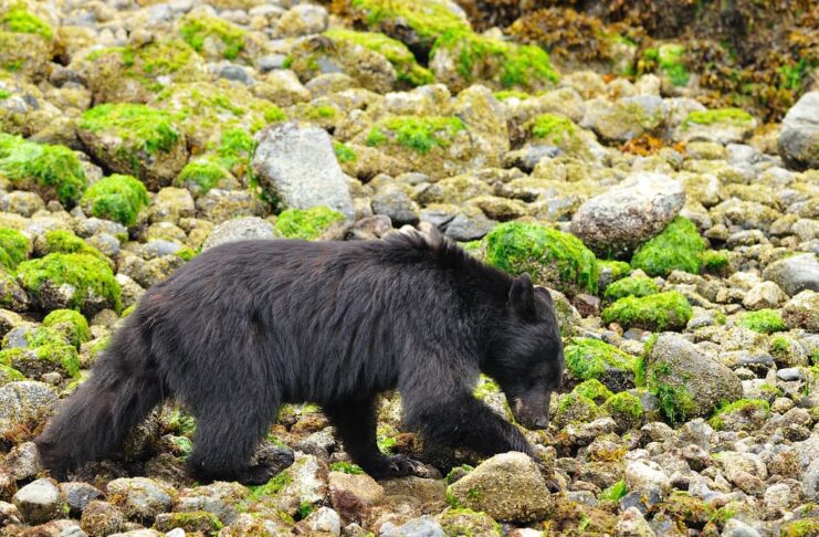 You are looking at the largest American black bear subspecies across North America. In fact, Haida Gwaii black bears are the largest land mammal native to the archipelago, standing 2.1 to 2.4 meters tall. In the archipelago, they inhabit estuaries, forests, meadows, shorelines, and streams. These bears have large skulls and molars that allow them to crack open the tough shells of shellfish. Where they live, they feed on barnacles, beach hoppers, clams, crabs, mussels, and sea urchins. In spring and early summer, they feed on green vegetation including beach lovage, cow parsnip, ferns, fireweed, horsetail, nettles, Pacific hemlock, rushes, and sedges. Hunting is the major cause of mortality of this black bear subspecies.