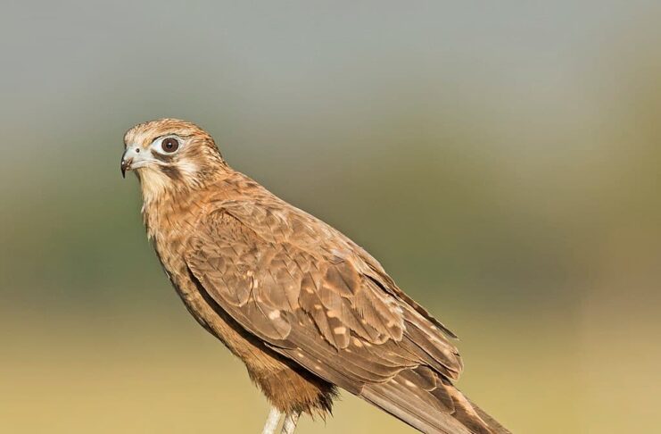 With other names such as Chicken Hawk, Orange-Speckled Hawk, and more, brown hawks have different colors based on where they come from. The ones from tropical north Australia are very dark in color while those from central Australia are pale all over. These falcons are found in open, grassy, and unforested agricultural areas as well as savannas and scrub areas throughout Australia. Where they live, these falcons eat bugs, lizards, reptiles, and small birds, especially farm chickens. Brown falcons usually hunt alone by swooping and grasping the prey in their claws with a bite to the spine, killing the prey immediately. Because of their widespread population, brown falcons are often seen perching on power poles or flying over open habitats.