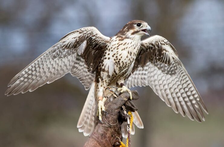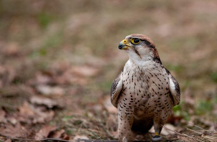 Living in dry open grasslands, open hills, and semi-desert, saker falcons are one of the largest falcons and powerful birds of prey. Due to their large size, the wingspan of these raptors is up to 126 centimeters (50 inches) in length. They have a wide range of colors from dark brown and grey to almost white. Just like Amur falcons, saker falcons are migratory. They breed in the Palearctic region from Central Europe to Asia, and they migrate south to Africa, and Eastern and Southern Asia.