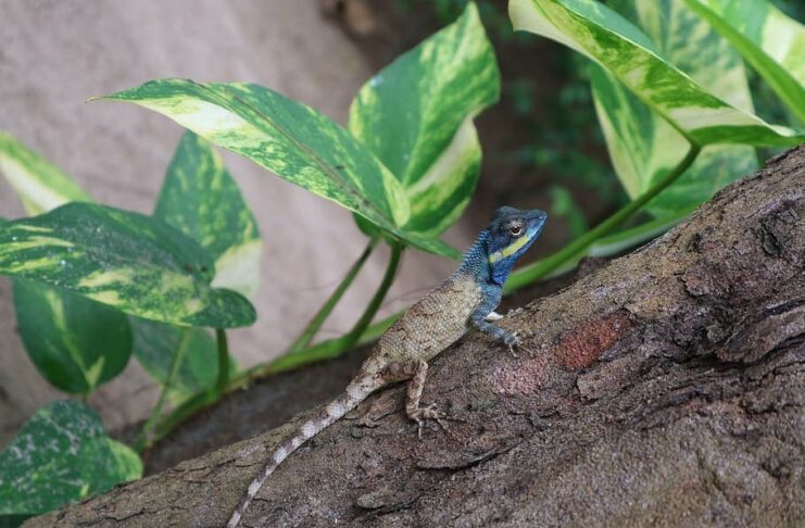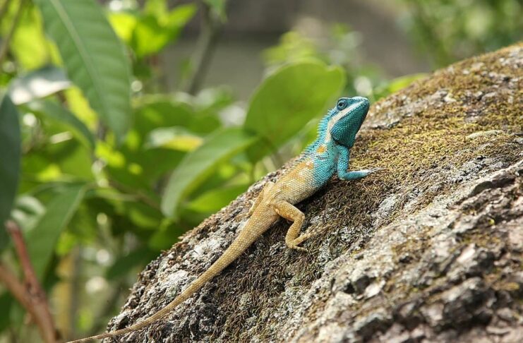 Not different from other lizard species, this one is also carnivorous with a preference for insects and invertebrates. Normally, they feed on beetles, crickets, grasshoppers, moths, and other bugs that they can find. The distribution of blue crested lizards is in China, South Asia, and Southeast Asia. Across their range, they inhabit lowland and lower montane forests as well forest edges, gardens, and parks.
