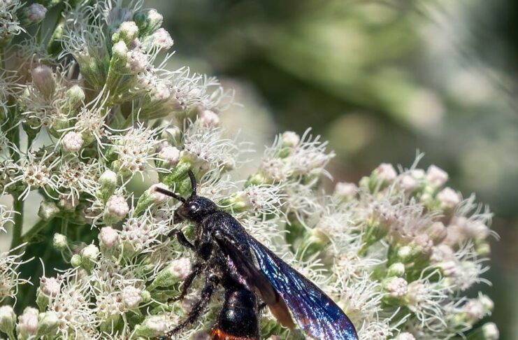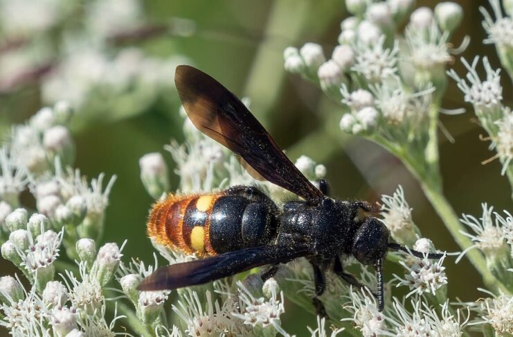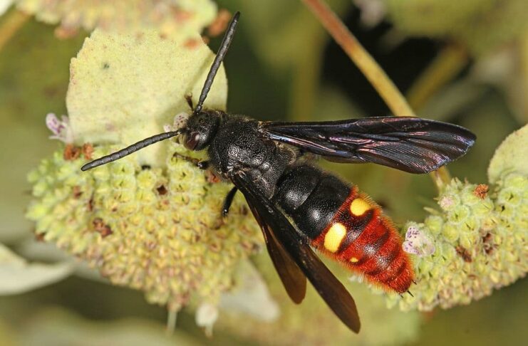 Blue-winged wasp aka two-spotted scoliid wasp, is a wasp species with a very eye-catching and interesting appearance. This wasp is non-aggressive and solitary, and they will not attack you. Beauty and calmness, this insect is clearly one of a kind. There is still very little information about the blue-winged wasps, but let’s see what we have below.