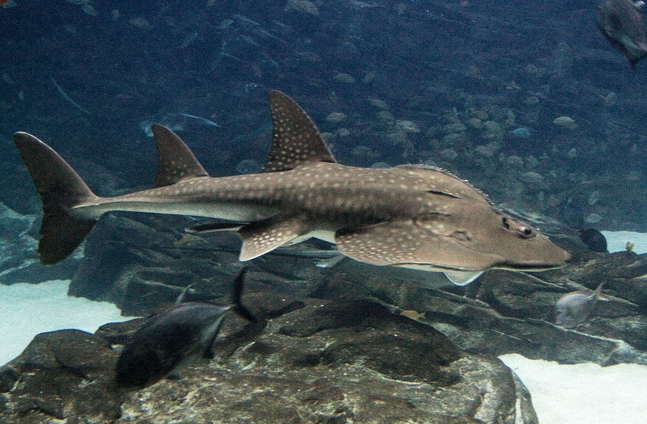 Bowmouth guitarfish is a close family member of skates and true guitarfish, but it is actually a ray. It also goes by the names mud skate and shark ray, and it is a rare fish species. This marine creature not only has a fascinating appearance but also behavior. We should definitely dive deeper and find out more below.