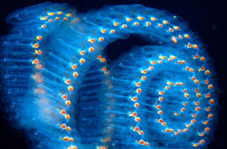 The unique thing about this creature is that everyone loves to swim in large groups, and they are all transparent. The salps propel and move as the water pumps in and out of the openings of their bodies. In case you wonder, they also have gills and hearts as they are closely related to marine vertebrates like fish. Since they are asexual, these creatures are capable of producing their own offspring to form massive chains. Salpa Maxima lives in cold waters, and their food mainly consists of algae and phytoplankton.