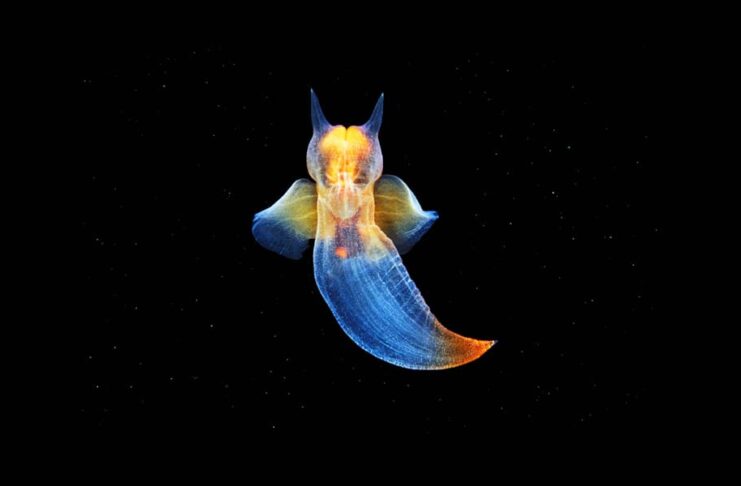Such a marvelous name to call the extremely small swimming sea slugs of the Arctic Ocean like these ones right here. The sea angels are gelatinous and mostly transparent, and they love to swim in warmer waters. The cute thing about them is the way they flutter through the water as they feed at the same time. Sea angels are carnivorous, and they feed on pteropods known as the Thecosmata. Sometimes they can be ambush predators who sit and wait for the prey to come. Since they are fully transparent with pedal wings, calling them sea angels is simply the best option.