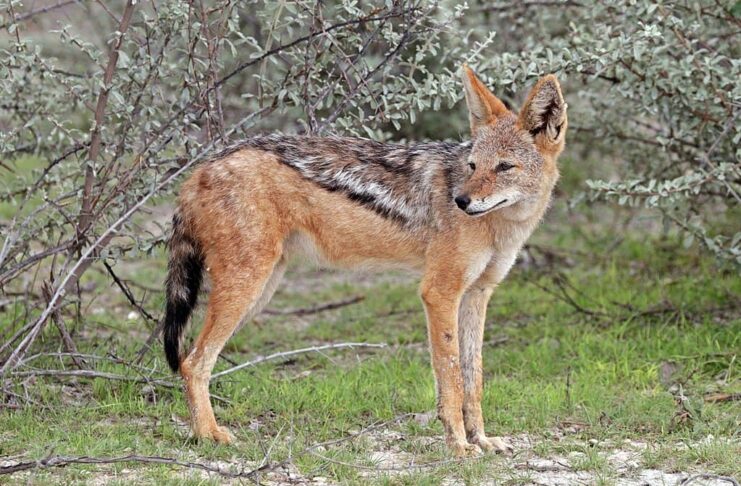 This species is a medium-sized omnivorous animal that feeds on both meat and fruit that they can find. They are the predators of small to medium-sized animals as well as proficient scavengers. Jackals have long legs and curved canine teeth that they use for hunting small mammals, birds, and reptiles. These wild dogs have large feet and fused leg bones that allow for long-distance running at a great speed of 16km/h.