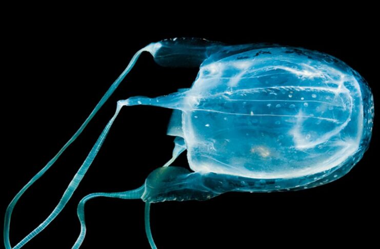 This is another species of box jellyfish that is cube-shaped and transparent, and it is one of the venomous jellyfish. Also known as Habu in Okinawa Prefecture of Japan, the encounter between this jellyfish and people is very common. The sting of this jellyfish species is very dangerous, and painful, and can be fatal in certain cases. All stings are linear in nature as they cause both intense pain and systemic symptoms. Apart from pain, the victims also experience cardiac arrest, respiratory failure with acute pulmonary edema, or even worse, death.