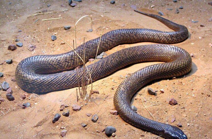 Eastern brown snakes are very fast-moving, and an Australian naturalist reported that they could outpace a person running at full speed. When disturbed, an eastern brown snake will raise its body off the ground, winding into an S shape with its mouth gaping open. If you get any close, it will not hesitate to snake. The venom of these snakes contains textilotoxin that causes progressive paralysis and destructs nerve tissue, resulting in central nervous system damage. Without immediate medical attention, a bite can lead to fatality although the case is rare due to the availability of antidotes.