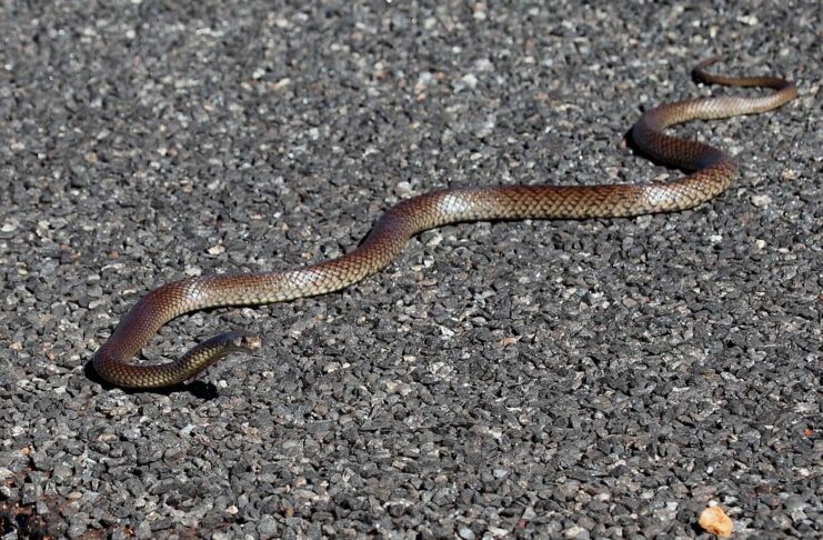 Some snakes are venomous but not dangerous, but this is not the case with dugite. These snakes are both venomous and dangerous, and they are common in southern parts of Western Australia. Dugite lives in a wide range of habitats such as coastal dunes, heathlands, shrubs, and woodlands, sheltering beneath logs or rocks. In Perth, dugites are one of the most common snakes found next to the building where mice are abundant.