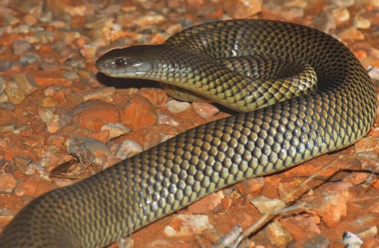 Fast-moving and large, the inland taipans are dangerous snakes endemic to Australia and New Guinea. At the same time, these are also one of the most highly venomous snakes in Australia and the world as well. That is because they are known to have the most toxic venom of any terrestrial snakes in the world. Compared to the coastal taipan, this species is smaller but they are both deadly and venomous. The inland taipan almost always injects venom when it bites, and those short fangs can deliver a great amount of venom.