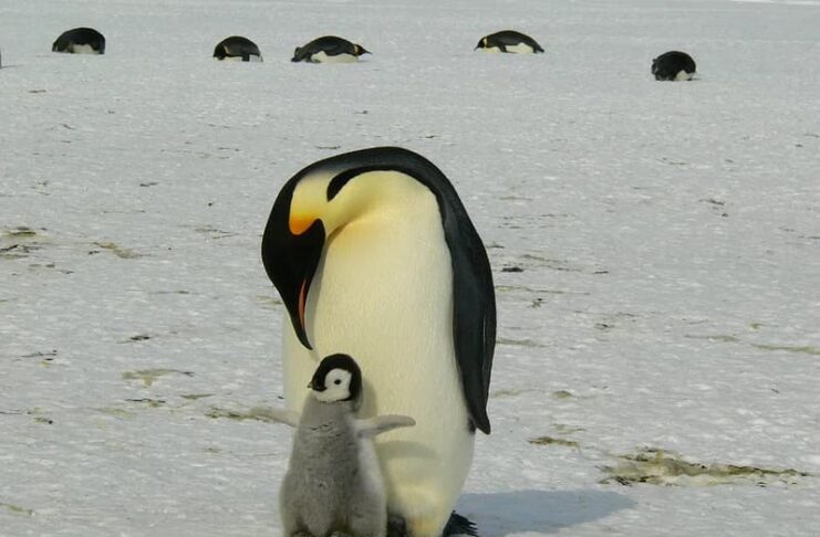 Egg caring is not the only thing that he does, the responsibilities extend if the egg hatches before the mom’s return. In this case, the dad will also feed the chick with milk he produces from his esophagus! Along with that, he has to keep the little chick warm because the newborn cannot regulate its body temperature yet. To achieve this, all fathers huddle together and form a giant phalanx of dads and newborns to conserve heat. When the mom comes back, it is the dad’s turn to go to the sea to feed after fasting for two months. You know the dads do their jobs very well when you see adorable Emperor penguin babies waddling on the ice.