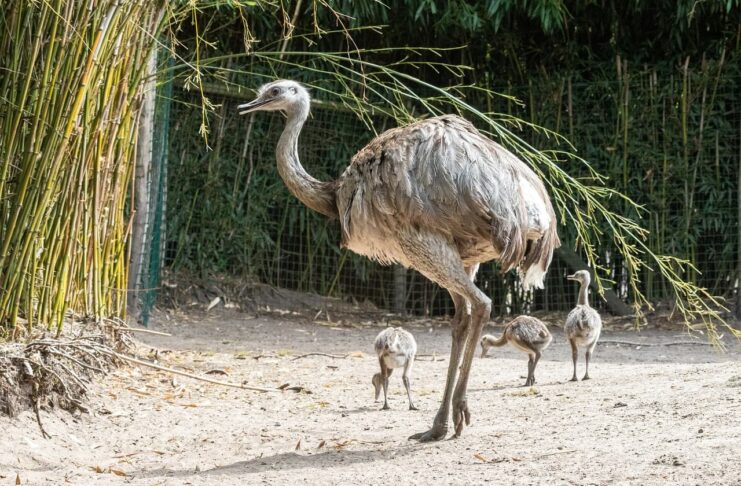 Emu dads are the single dads in the bird kingdom, taking of all the eggs by themselves. After the mating season, a female lays a clutch of between 6 to 11 eggs in a nest. Then she leaves the eggs to the male to watch over and care for. The dad spends about 60 days incubating the eggs, then care for his emu chicks for up to 2 years. During those times, male emus become extra aggressive and possessive of anything around them. At the same time, they are unable to eat which leads to weight loss during the incubation period. Once the chicks hatch, the dads will teach them how to forage and survive before letting them live their lives. So if you see an emu walking with several emu chicks, that is the dad, not the mom.