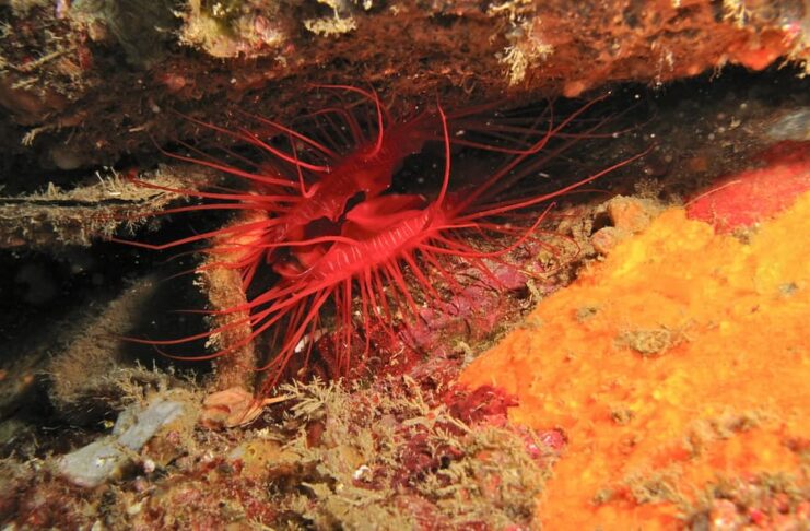 The fascinating appearance of this bivalve earns it many nicknames such as disco clam, electric clam, and electric flame scallop. Why disco clam though? That is because its soft tissues can flash light just like a disco ball. Those tissues are on the outer edge of their mantle, and they are highly reflective due to minute nano-spheres made of silica. The nano-spheres give the electric fire clam a brightly reflective glow that it can turn on and off at will.