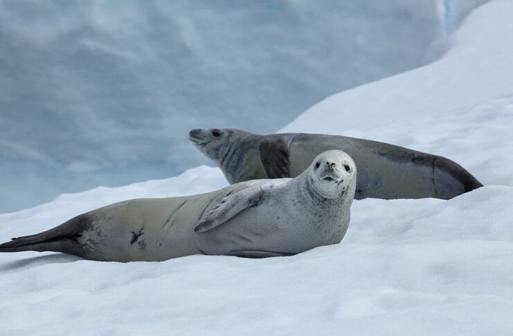 This is the species that are among the few types that can move gracefully over land and ice. Crabeater seals can move great distances on land whereas others can only travel like that in water. You probably think they love crabs, but no. Their main source of food is actually krill, and it makes up about 95% of their diet. Crabeater seals do most of their feeding at night, and they can dive as deep as 430 meters. The hunt can last up to 16 hours, involving hundreds of dives.