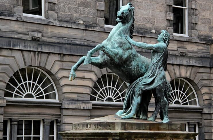 This fierce noble steed succumbed to injuries sustained during the Battle of Hydaspes in 326 BC. That was when Alexander fought the Indian King Porus in what is now the modern Punjab Province of Pakistan. As for Bucephalus’ name, it means “ox’s head” due to the branding mark depicting the ox’s head on his haunch. A loyal steed indeed, and that is why Alexander built a town in Pakistan called Bucephalus in memory of this noble steed.