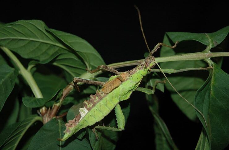 In the case of phasmid, the size and color of the male and female are varied just like in the cardinals. Females are bright lime green in color with large size while the males are mottled brown. The fascinating is the fact that the female phasmids are flightless while the males are able to fly. This gives you the question about their ability to fly, but the answer is quite obvious actually. You can see the wing on the male brown side, and that means gynandromorph phasmid cannot fly with one wing.