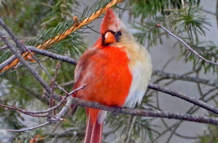 Male cardinals are red in color while female cardinals are tan. So a gynandromorph cardinal gives you the combination of both colors on each side of its body. Gynandromorph cardinals are very rare, and the first of them was seen in 2008 by a retired high school teacher. Some studies suggest that the gynandromorph cardinal’s brain could be half male and half female. Since male cardinals are capable of singing while females are not, this topic is still under debate. Also, most gynandromorph individuals are infertile so the chance of them having offspring is also a debatable matter.