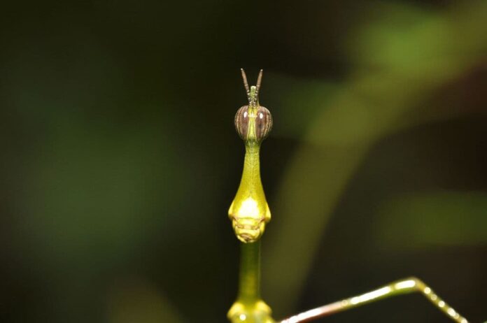 Both have an elongated face and large eyes, but males have larger bulbous eyes, which give them a confused expression. These eyes are not just for show; the placement is there for a reason. The eyes of the horsehead grasshoppers sit high atop the head, and that provides a panoramic view of their surroundings. So in case of predators approaching, they can leap to safety immediately.