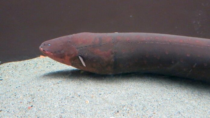 Being the oldest electric eel species, but was just discovered in 2019, the data on Vari’s electric eels is still inadequate. Appearance-wise, it has a long slender body with a flat head. Its scaleless body is dark gray to brown, with a yellow-orange underside. Unlike the electric eels, Vari’s electric eels do not have a clear body band. It is quite short, compared to other electric eels, being only around 1.4 meters maximum. If we talk about electricity, Vari’s electric eels produce maximum voltage at around 570 volts.