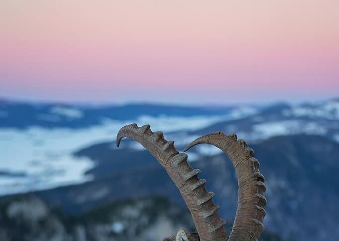 Alpine ibexes are the residents of the European Alps, living in Austria, Bulgaria, France, Germany, Slovenia, and Switzerland. They like living in open alpine meadows and steep rough terrains where they feed on grass. Their robust legs with sharp hooves allow them to scale their mountainous habitats, making them excellent climbers. When there is danger, they will retreat to the steepest rock but they have very few predators. Alpine ibexes also migrate in line with the seasons to follow the growth of vegetation. In summer and fall, they live in Alpine meadows and they will retreat to steep south-facing slopes in winter.