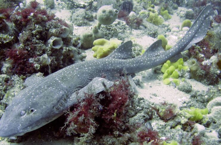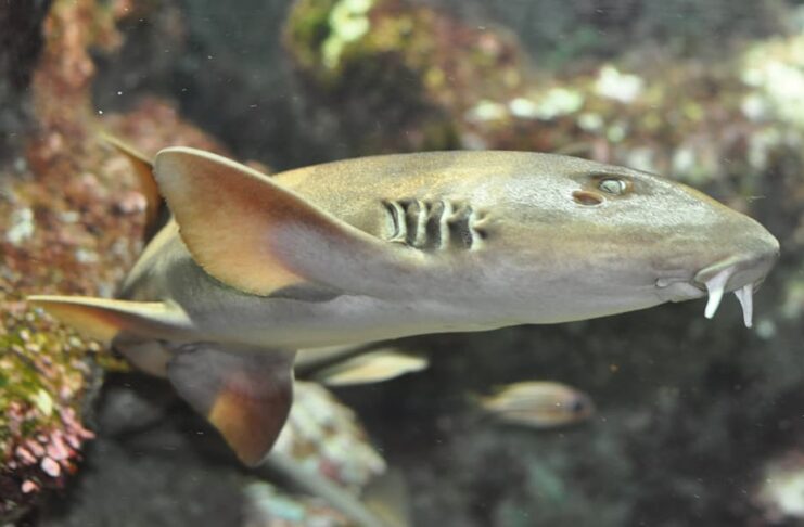 A collared carpet shark has a maximum length of only around 85 centimeters, making them pretty small. The body of this shark is slender with a narrow head, and it has a prominent dark-brown collar around its gills. These brown collars make it look like the shark is wearing a collar; hence the name. It has dark spots along its body and fins that help it camouflage from other sea creatures, especially prey. The coolest part is that this shark can change its color to match the sea floor as well. These small sharks are endemic to the eastern coast of Australia where they feed on bottom-dwelling crustaceans and mollusks. They inhabit muddy, rocky, or sandy ocean floors where they spend most of their time hiding in corals or rocks. Not different from other carpet shark species out there, this one is also harmless to humans.