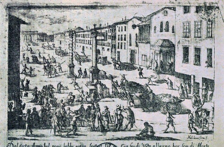 Such a calamitous outbreak began when the German and French troops carried the plague to the city of Mantua in 1629. The Venetian troops were infected with the disease, and the plague made its way across the countryside via the troops. Then it continued to spread and strike the major cities of Verona, Milan, Venice, and Florence before reaching Naples, Rome, and Genoa.